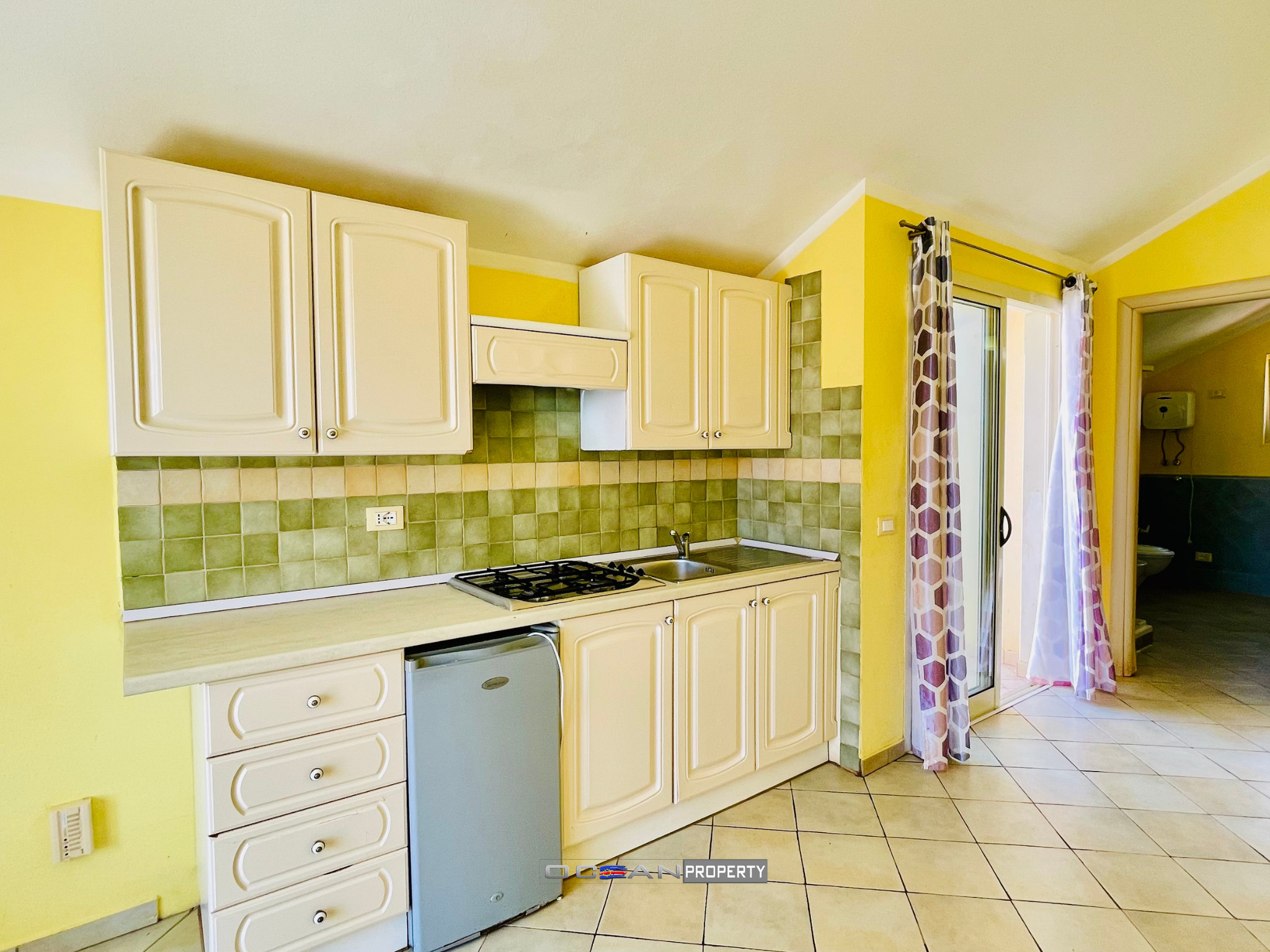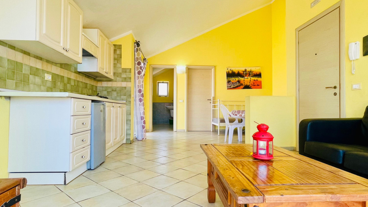 The property consists of a living room with kitchenette, a bedroom and a bathroom. It also features both a balcony and a spacious terrace with sea view, offering a beautiful setting to relax and enjoy the ocean breeze.