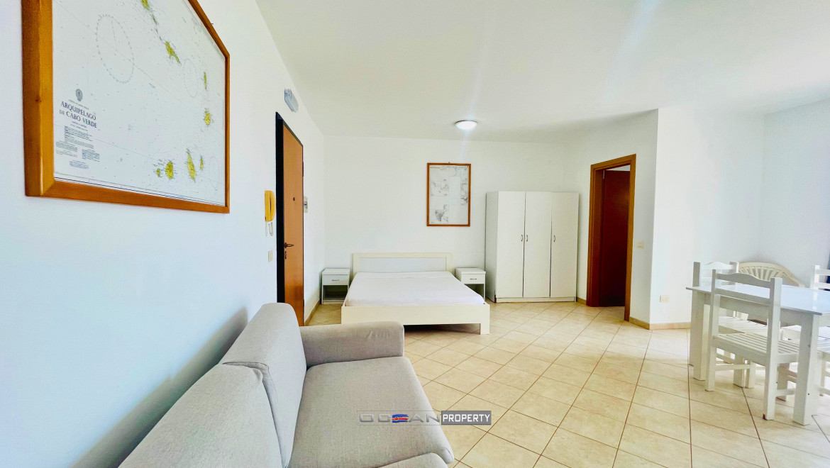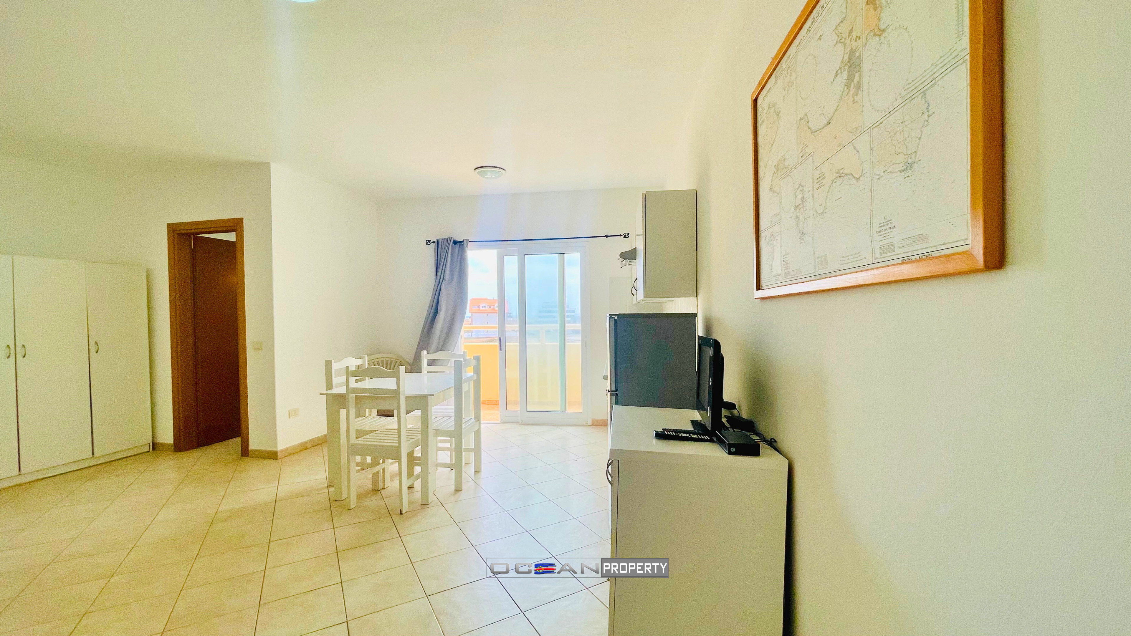 Bright studio apartment for sale, located on the second floor of the well-maintained La Piazza building in Praia António Sousa, Santa Maria.